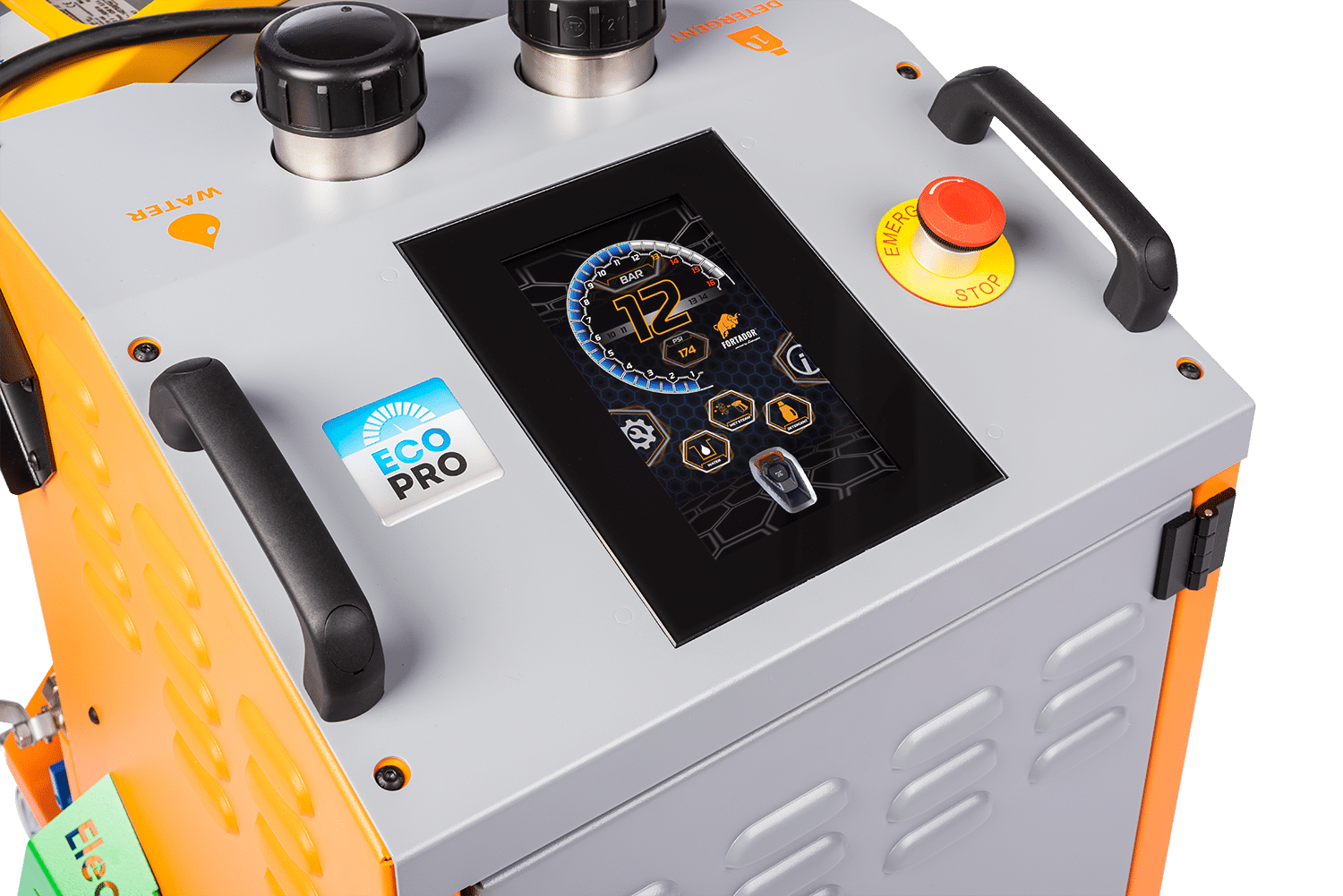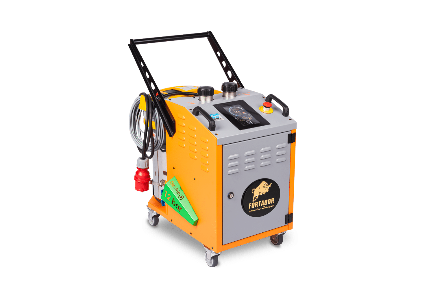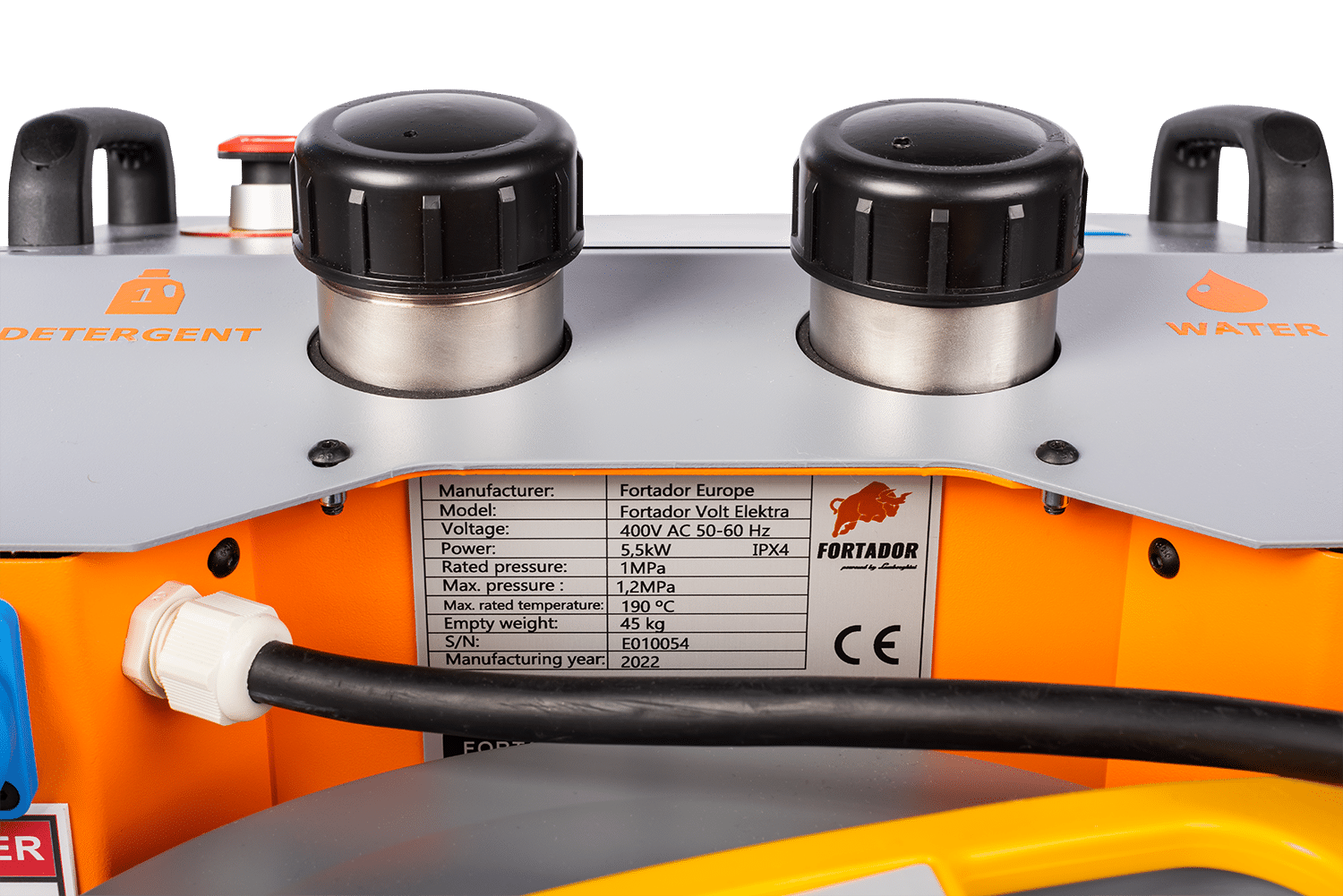 De Fortador Volt Electra werkt met hogetemperatuurstoom onder een druk van 12 bar, waardoor vervuiling effectief wordt losgeweekt en verwijderd. Deze vorm van thermische reiniging maakt het mogelijk om met minimale waterbelasting te werken en in veel gevallen het gebruik van chemie sterk te reduceren.