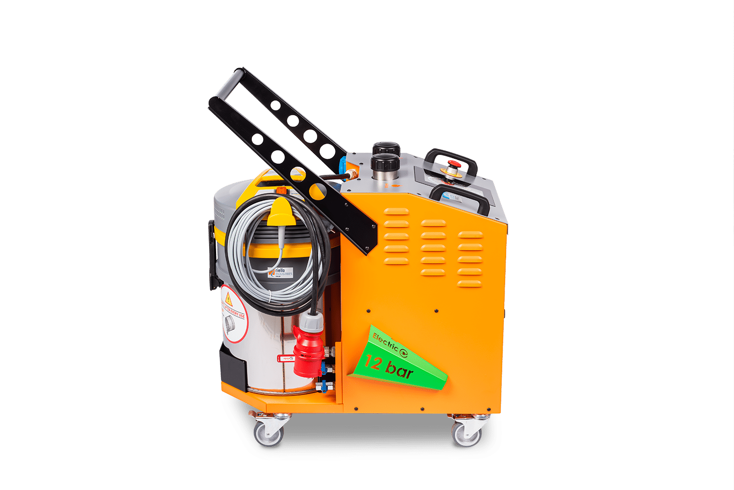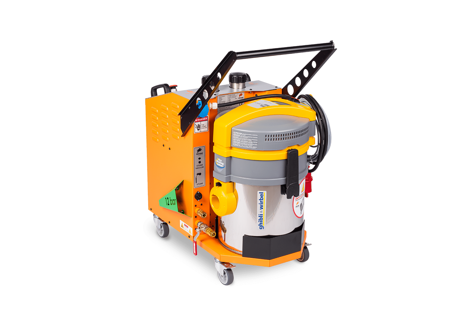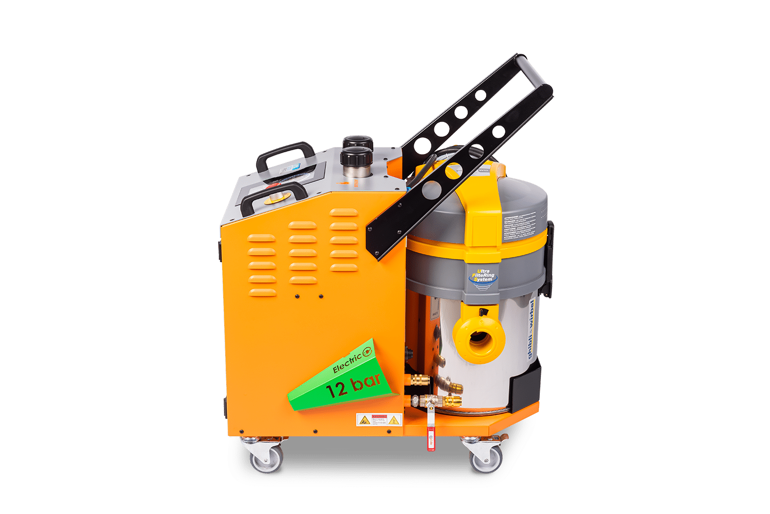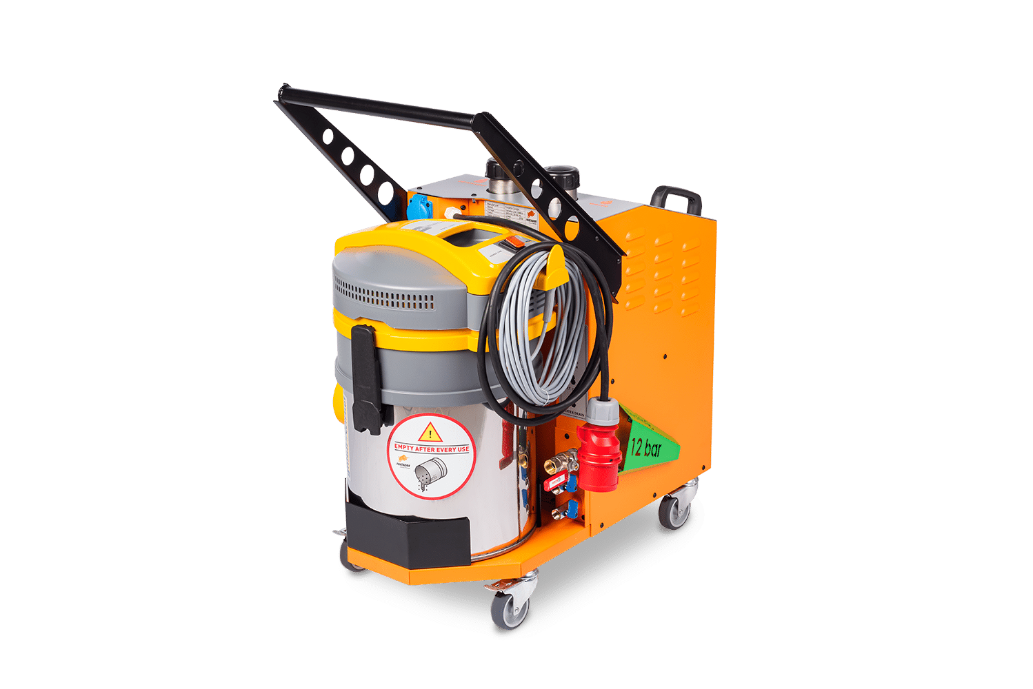 De Fortador Volt Electra is een compacte maar krachtige elektrische stoomreiniger, ontworpen voor professioneel gebruik in omgevingen waar controle, flexibiliteit en hygiëne centraal staan. Met een stoomdruk van 12 bar, geïntegreerde extractie, wet steam-functie en chemiedoorvoer biedt deze machine een veelzijdige oplossing voor uiteenlopende reinigingstoepassingen.